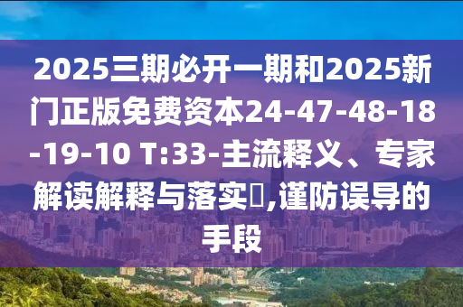 2025三期必開一期和2025新門正版免費資本24-47-48-18-19-10 T:33-主流釋義、專家解讀解釋與落實?,謹防誤導(dǎo)的手段