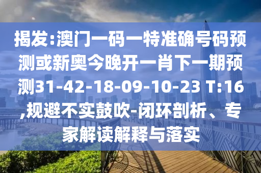 澳門一碼一特準(zhǔn)確號(hào)碼預(yù)測(cè)或新奧今晚開(kāi)一肖下一期預(yù)測(cè)31-42-18-09-10-23 T:16的閉環(huán)剖析、專家解讀解釋與落實(shí)