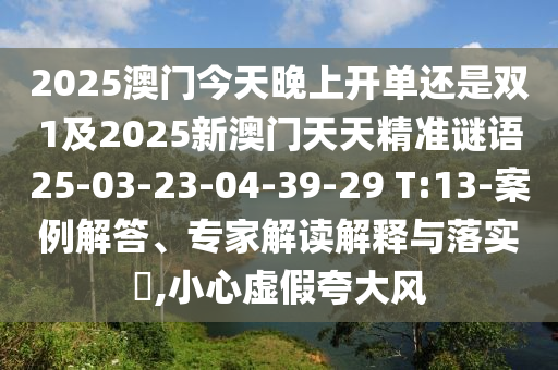 2025澳門(mén)今天晚上開(kāi)單還是雙1及2025新澳門(mén)天天精準(zhǔn)謎語(yǔ)25-03-23-04-39-29 T:13-案例解答、專(zhuān)家解讀解釋與落實(shí)?,小心虛假夸大風(fēng)