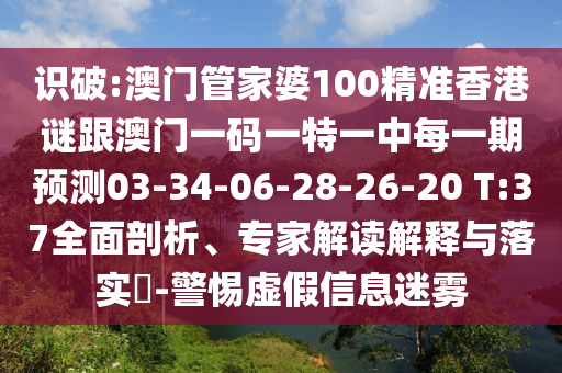 識(shí)破:澳門管家婆100精準(zhǔn)香港謎跟澳門一碼一特一中每一期預(yù)測(cè)03-34-06-28-26-20 T:37全面剖析、專家解讀解釋與落實(shí)?-警惕虛假信息迷霧