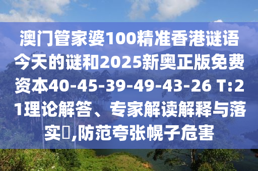 澳門管家婆100精準香港謎語今天的謎和2025新奧正版免費資本40-45-39-49-43-26 T:21理論解答、專家解讀解釋與落實?,防范夸張幌子危害