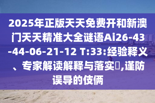 2025年正版天天免費開和新澳門天天精準(zhǔn)大全謎語Ai26-43-44-06-21-12 T:33:經(jīng)驗釋義、專家解讀解釋與落實?,謹防誤導(dǎo)的伎倆