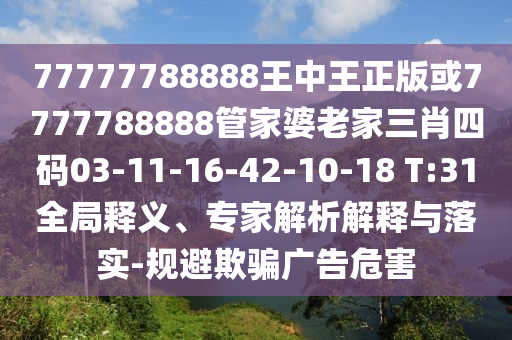 77777788888王中王正版或7777788888管家婆老家三肖四碼03-11-16-42-10-18 T:31的全局釋義、專家解析解釋與落實