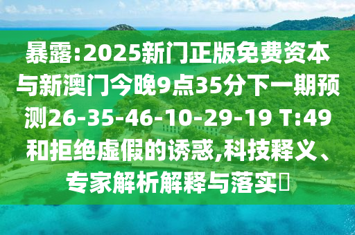 暴露:2025新門(mén)正版免費(fèi)資本與新澳門(mén)今晚9點(diǎn)35分下一期預(yù)測(cè)26-35-46-10-29-19 T:49和拒絕虛假的誘惑,科技釋義、專家解析解釋與落實(shí)?