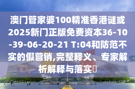 澳門管家婆100精準(zhǔn)香港謎或2025新門正版免費(fèi)資本36-10-39-06-20-21 T:04和防范不實(shí)的假營(yíng)銷,完整釋義、專家解析解釋與落實(shí)?