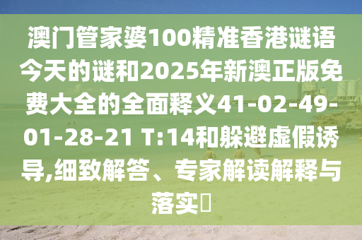 澳門管家婆100精準(zhǔn)香港謎語(yǔ)今天的謎和2025年新澳正版免費(fèi)大全的全面釋義41-02-49-01-28-21 T:14和躲避虛假誘導(dǎo),細(xì)致解答、專家解讀解釋與落實(shí)?