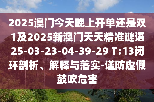 關(guān)于您提供的關(guān)鍵詞“2025澳門(mén)今天晚上開(kāi)單還是雙1”、“2025新澳門(mén)天天精準(zhǔn)謎語(yǔ)25-03-23-04-39-29 T:13”以及“謹(jǐn)防虛假鼓吹危害-閉環(huán)剖析、解釋與落實(shí)”,我會(huì)逐一進(jìn)行釋義、解釋與落實(shí),并特別提醒公眾警惕虛假宣傳。