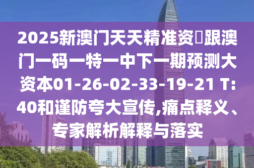 2025新澳門天天精準(zhǔn)資枓跟澳門一碼一特一中下一期預(yù)測大資本01-26-02-33-19-21 T:40和謹(jǐn)防夸大宣傳,痛點釋義、專家解析解釋與落實