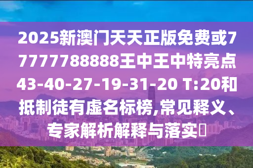 2025新澳門天天正版免費或77777788888王中王中特亮點43-40-27-19-31-20 T:20和抵制徒有虛名標榜,常見釋義、專家解析解釋與落實?