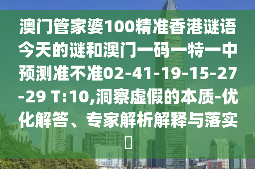 澳門管家婆100精準香港謎語今天的謎和澳門一碼一特一中預(yù)測準不準02-41-19-15-27-29 T:10,洞察虛假的本質(zhì)-優(yōu)化解答、專家解析解釋與落實?