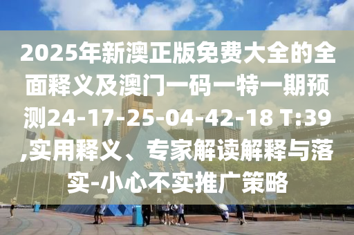 2025年新澳正版免費(fèi)大全的全面釋義及澳門一碼一特一期預(yù)測24-17-25-04-42-18 T:39,實(shí)用釋義、專家解讀解釋與落實(shí)-小心不實(shí)推廣策略