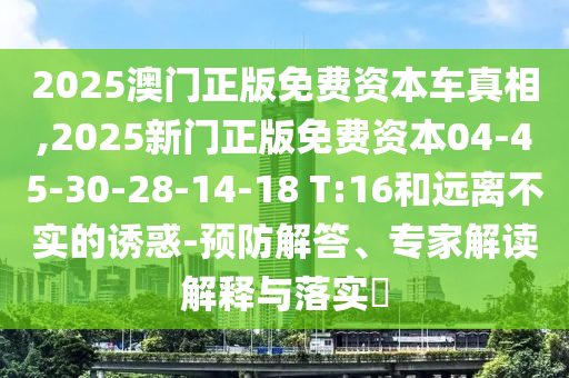 2025澳門正版免費資本車真相,2025新門正版免費資本04-45-30-28-14-18 T:16和遠離不實的誘惑-預防解答、專家解讀解釋與落實?