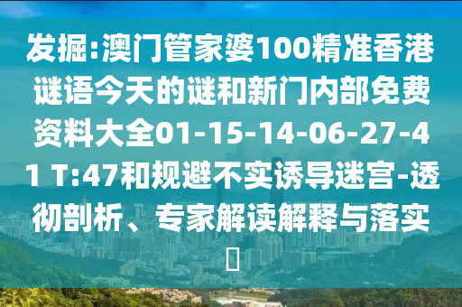 發(fā)掘:澳門管家婆100精準(zhǔn)香港謎語今天的謎和新門內(nèi)部免費(fèi)資料大全01-15-14-06-27-41 T:47和規(guī)避不實誘導(dǎo)迷宮-透徹剖析、專家解讀解釋與落實?