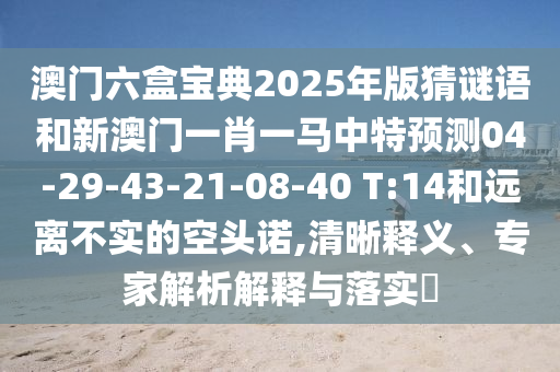 澳門六盒寶典2025年版猜謎語和新澳門一肖一馬中特預(yù)測04-29-43-21-08-40 T:14和遠(yuǎn)離不實的空頭諾,清晰釋義、專家解析解釋與落實?
