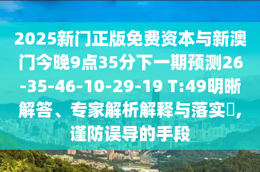 2025新門正版免費資本與新澳門今晚9點35分下一期預(yù)測26-35-46-10-29-19 T:49明晰解答、專家解析解釋與落實?,謹(jǐn)防誤導(dǎo)的手段
