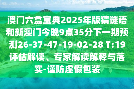 澳門六盒寶典2025年版猜謎語(yǔ)和新澳門今晚9點(diǎn)35分下一期預(yù)測(cè)26-37-47-19-02-28 T:19評(píng)估解讀、專家解讀解釋與落實(shí)-謹(jǐn)防虛假包裝