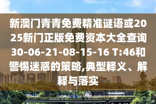 新澳門青青免費(fèi)精準(zhǔn)謎語或2025新門正版免費(fèi)資本大全查詢30-06-21-08-15-16 T:46和警惕迷惑的策略,典型釋義、解釋與落實(shí)