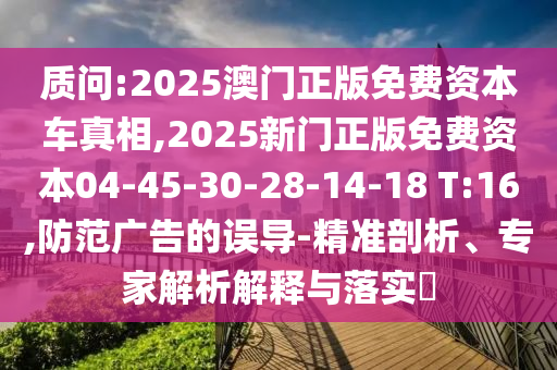 質(zhì)問:2025澳門正版免費(fèi)資本車真相,2025新門正版免費(fèi)資本04-45-30-28-14-18 T:16,防范廣告的誤導(dǎo)-精準(zhǔn)剖析、專家解析解釋與落實(shí)?