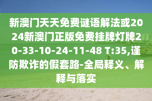 新澳門天天免費謎語解法或2024新澳門正版免費掛牌燈牌20-33-10-24-11-48 T:35,謹防欺詐的假套路-全局釋義、解釋與落實