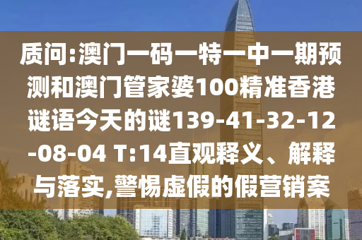 質(zhì)問(wèn):澳門(mén)一碼一特一中一期預(yù)測(cè)和澳門(mén)管家婆100精準(zhǔn)香港謎語(yǔ)今天的謎139-41-32-12-08-04 T:14直觀釋義、解釋與落實(shí),警惕虛假的假營(yíng)銷(xiāo)案