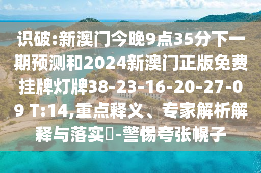 識(shí)破:新澳門今晚9點(diǎn)35分下一期預(yù)測和2024新澳門正版免費(fèi)掛牌燈牌38-23-16-20-27-09 T:14,重點(diǎn)釋義、專家解析解釋與落實(shí)?-警惕夸張幌子