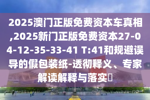 2025澳門正版免費(fèi)資本車真相,2025新門正版免費(fèi)資本27-04-12-35-33-41 T:41和規(guī)避誤導(dǎo)的假包裝紙-透徹釋義、專家解讀解釋與落實(shí)?
