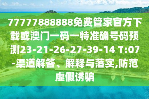 77777888888免費(fèi)管家官方下載或澳門一碼一特準(zhǔn)確號(hào)碼預(yù)測(cè)23-21-26-27-39-14 T:07的渠道解答、解釋與落實(shí)