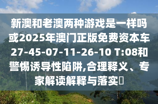 新澳和老澳兩種游戲是一樣嗎或2025年澳門正版免費資本車27-45-07-11-26-10 T:08和警惕誘導性陷阱,合理釋義、專家解讀解釋與落實?