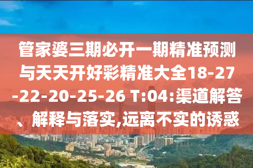 管家婆三期必開一期精準(zhǔn)預(yù)測與天天開好彩精準(zhǔn)大全18-27-22-20-25-26 T:04的渠道解答、解釋與落實