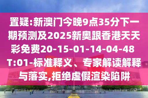 置疑:新澳門今晚9點(diǎn)35分下一期預(yù)測及2025新奧跟香港天天彩免費(fèi)20-15-01-14-04-48 T:01-標(biāo)準(zhǔn)釋義、專家解讀解釋與落實(shí),拒絕虛假渲染陷阱