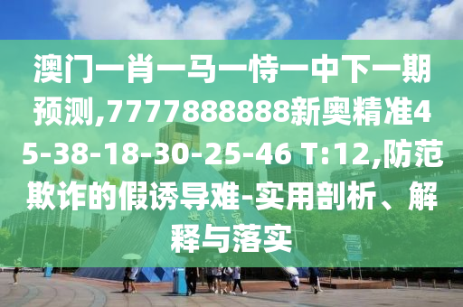 澳門一肖一馬一恃一中下一期預測,7777888888新奧精準45-38-18-30-25-46 T:12,防范欺詐的假誘導難-實用剖析、解釋與落實