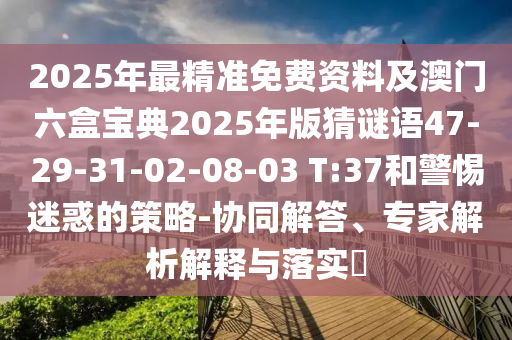 2025年最精準(zhǔn)免費(fèi)資料及澳門六盒寶典2025年版猜謎語47-29-31-02-08-03 T:37和警惕迷惑的策略-協(xié)同解答、專家解析解釋與落實(shí)?