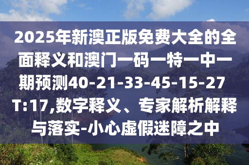 2025年新澳正版免費大全的全面釋義和澳門一碼一特一中一期預(yù)測40-21-33-45-15-27 T:17,數(shù)字釋義、專家解析解釋與落實-小心虛假迷障之中