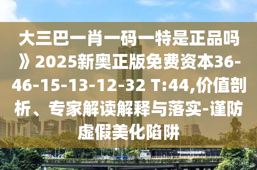 大三巴一肖一碼一特是正品嗎》2025新奧正版免費資本36-46-15-13-12-32 T:44,價值剖析、專家解讀解釋與落實-謹(jǐn)防虛假美化陷阱