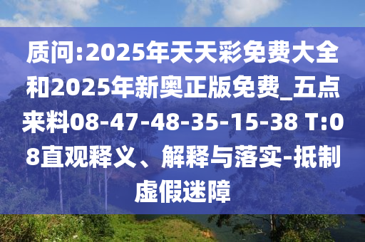 我們需要明確這個“質(zhì)問”的關(guān)鍵詞。“2025年天天彩免費大全”和“2025年新奧正版免費”似乎是與某種游戲或游戲相關(guān)的內(nèi)容,“五點來料”可能指的是某種特定的號碼或預測?!癟:08”可能代表某種特定的時間或代碼標識,“抵制虛假迷障”則明確表達了反對虛假宣傳的核心思想。