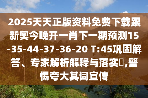 2025天天正版資料免費(fèi)下載跟新奧今晚開一肖下一期預(yù)測(cè)15-35-44-37-36-20 T:45鞏固解答、專家解析解釋與落實(shí)?,警惕夸大其詞宣傳