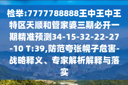 關(guān)于檢舉號碼“7777788888王中王中王特區(qū)天順和管家婆三期必開一期精準(zhǔn)預(yù)測34-15-32-22-27-10 T:39”的戰(zhàn)略釋義、專家解析解釋與落實(shí)及防范虛假宣傳危害的探討
