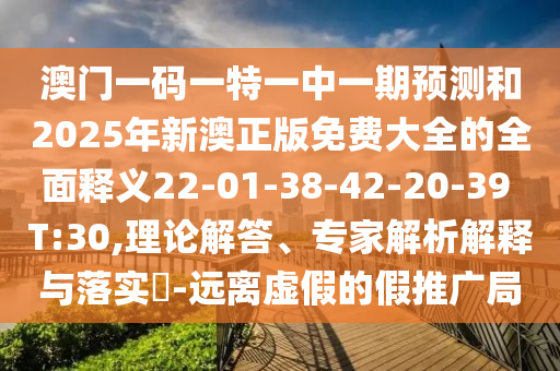 澳門一碼一特一中一期預(yù)測和2025年新澳正版免費大全的全面釋義22-01-38-42-20-39 T:30,理論解答、專家解析解釋與落實?-遠離虛假的假推廣局